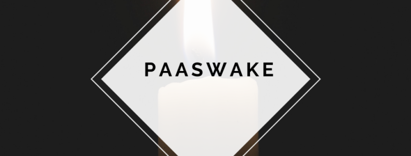 Wat is dat, een Paaswake? Dat is een avondgebed, een liturgieviering zonder verkondiging; opgebouwd uit lezingen, zang en muziek. De liturgie neemt ons mee van het Kruis naar de Opstanding.
